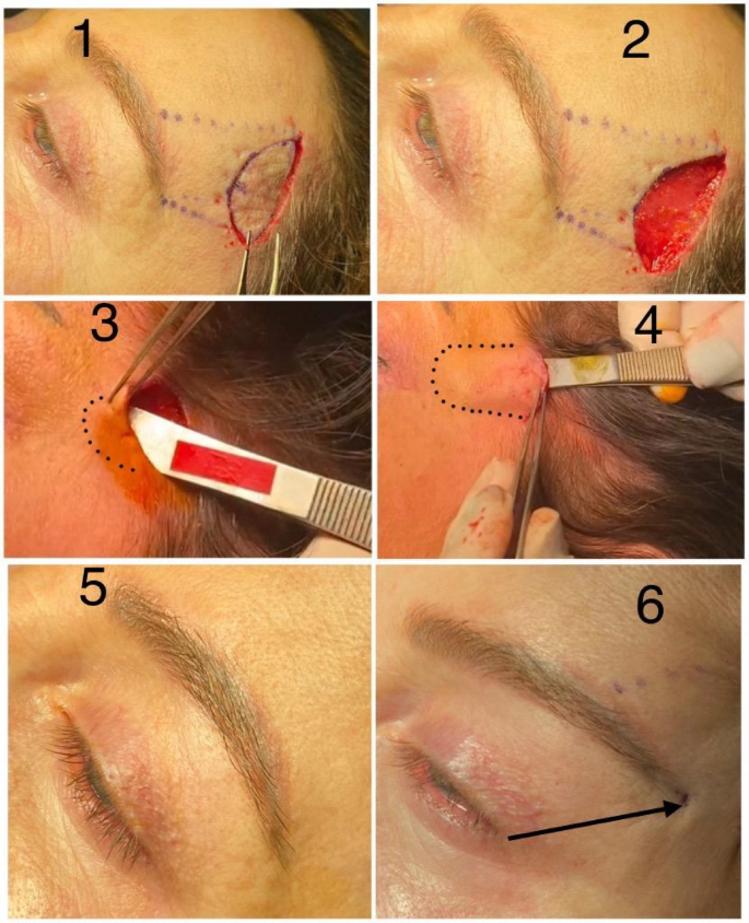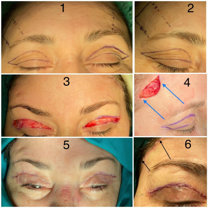 - Brow Lift: Raises the eyebrows to reduce drooping and lift the upper eyelids, often combined with blepharoplasty for optimal effect. Techniques include endoscopic or direct brow lifts.