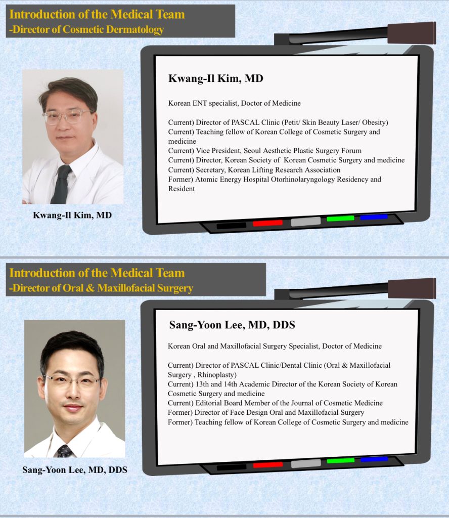 At PASCAL, KCCS in Gangnam, Seoul, international patients can expect world-class care from a distinguished team of professors and doctors who are recognized leaders in their respective specialties. With decades of combined experience, global reputations, and a commitment to the philosophy of “Beyond Plastic Surgery,” our surgeons focus not only on enhancing appearance but also on restoring function, balance, and long-lasting beauty. Each member of our medical team brings specialized expertise, ensuring that every patient receives personalized treatment built on science, artistry, and compassion [1-2].